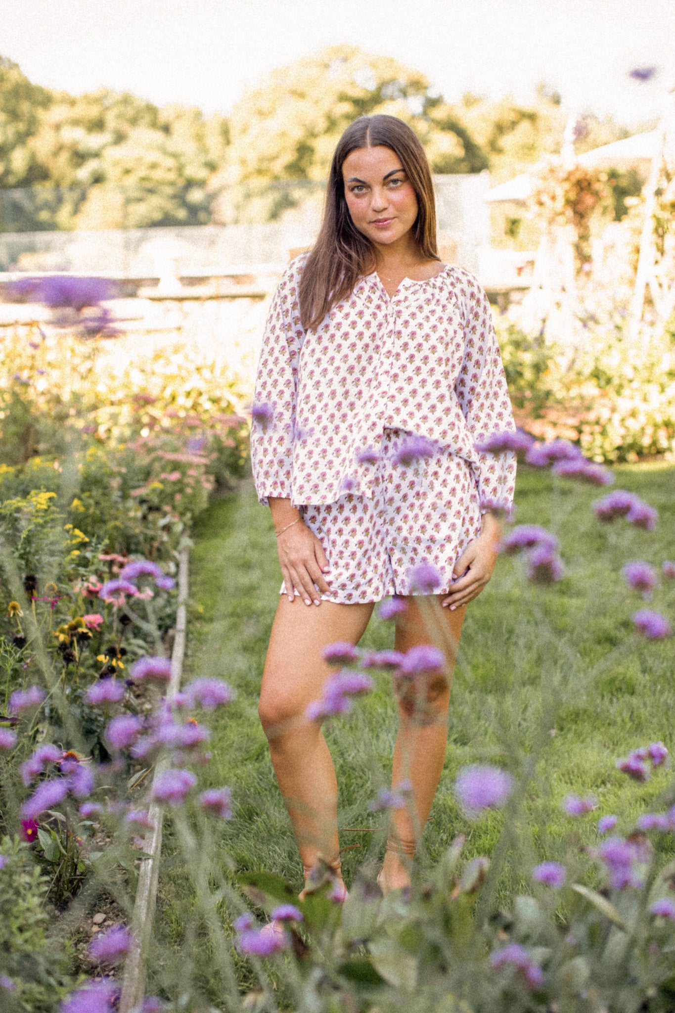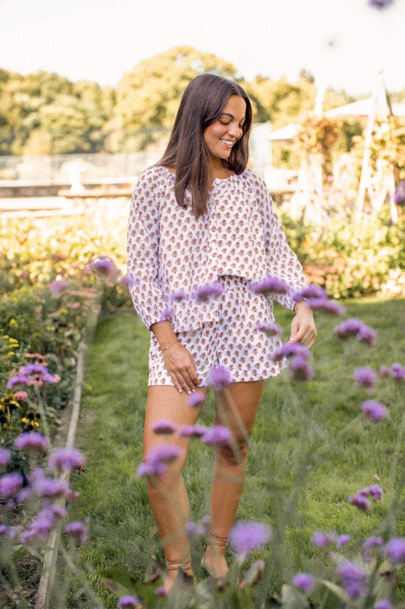 Ava Shorts - White Lavender Thistle