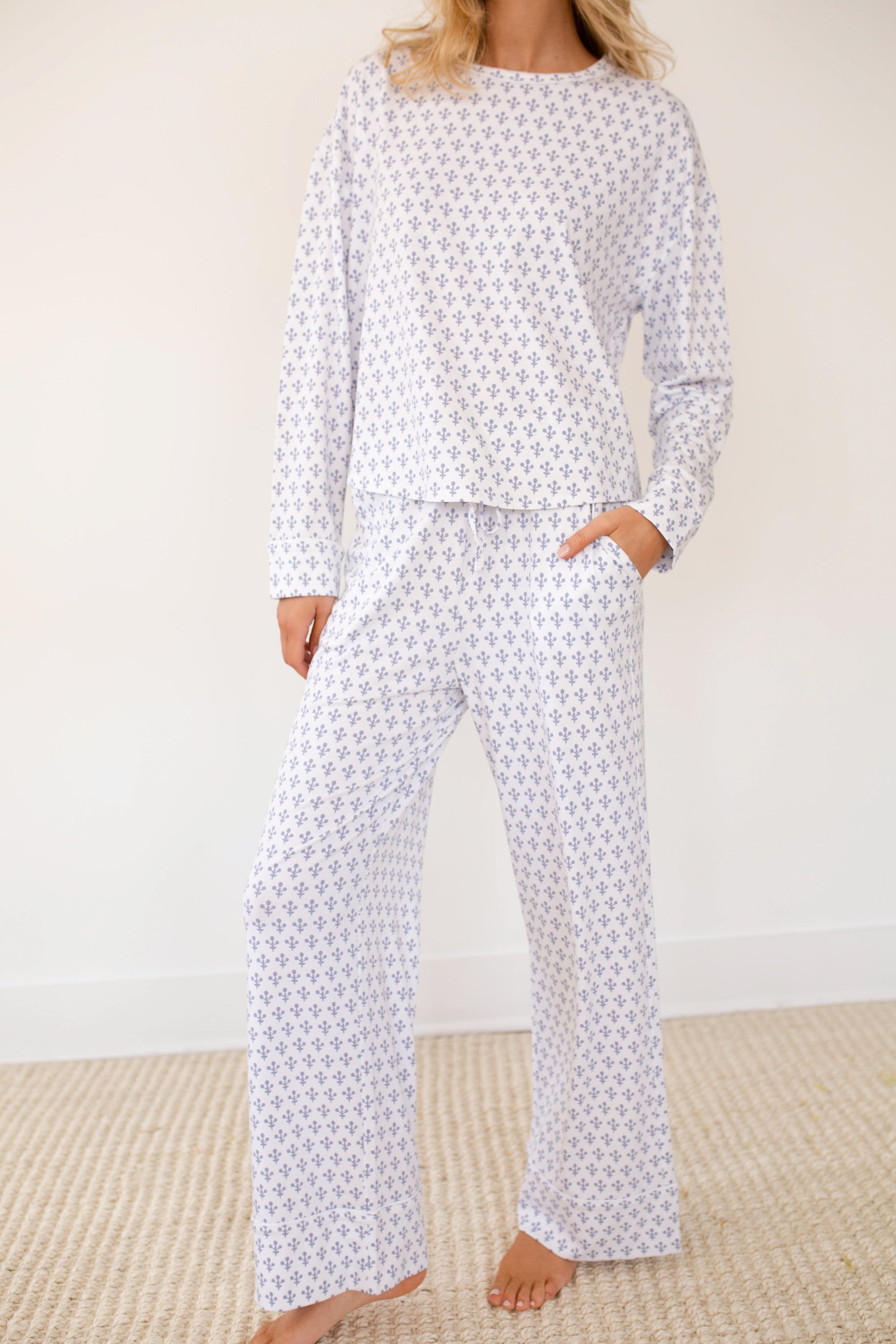 Steph Top - Ivory/Indigo Meadow