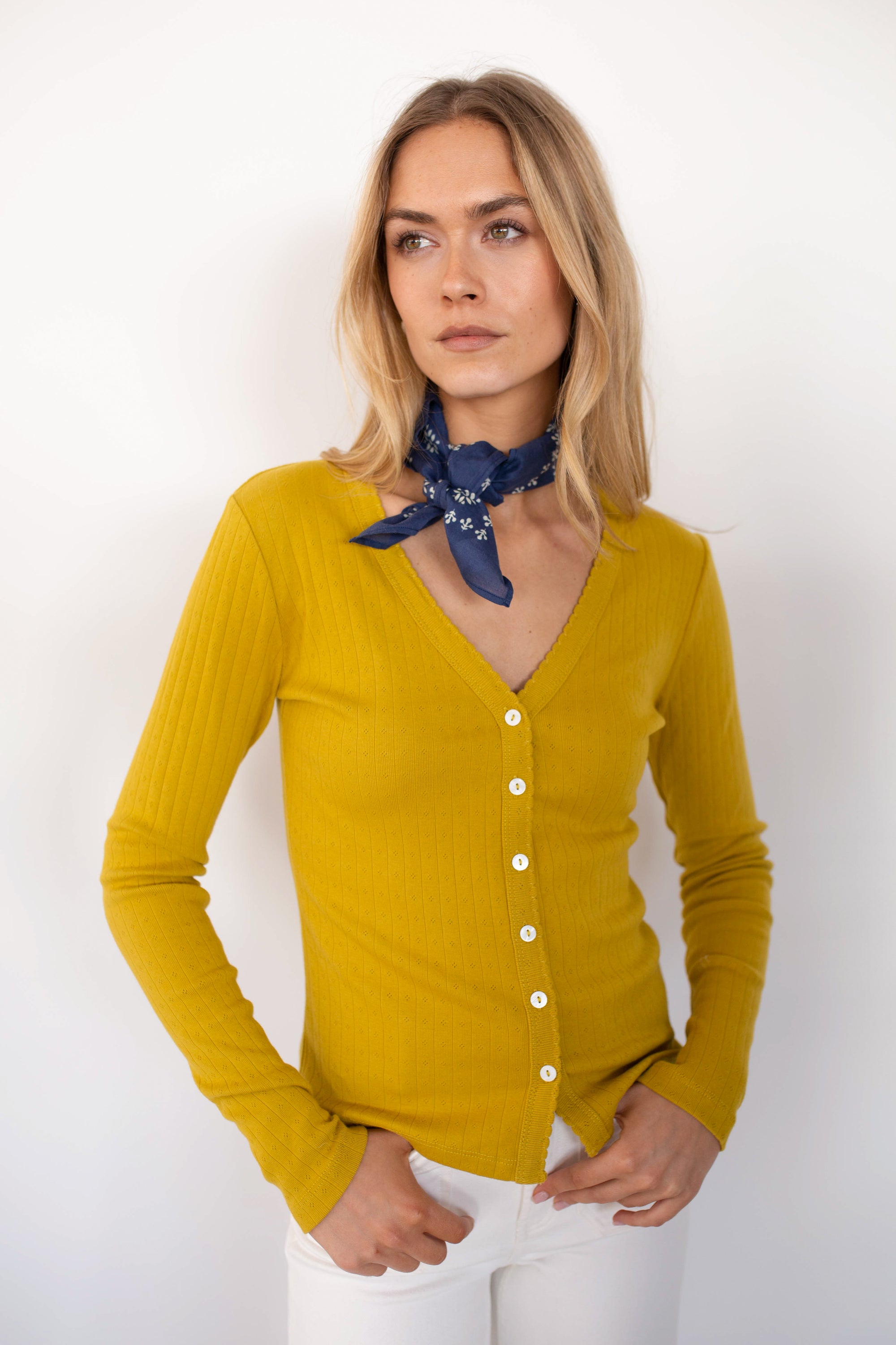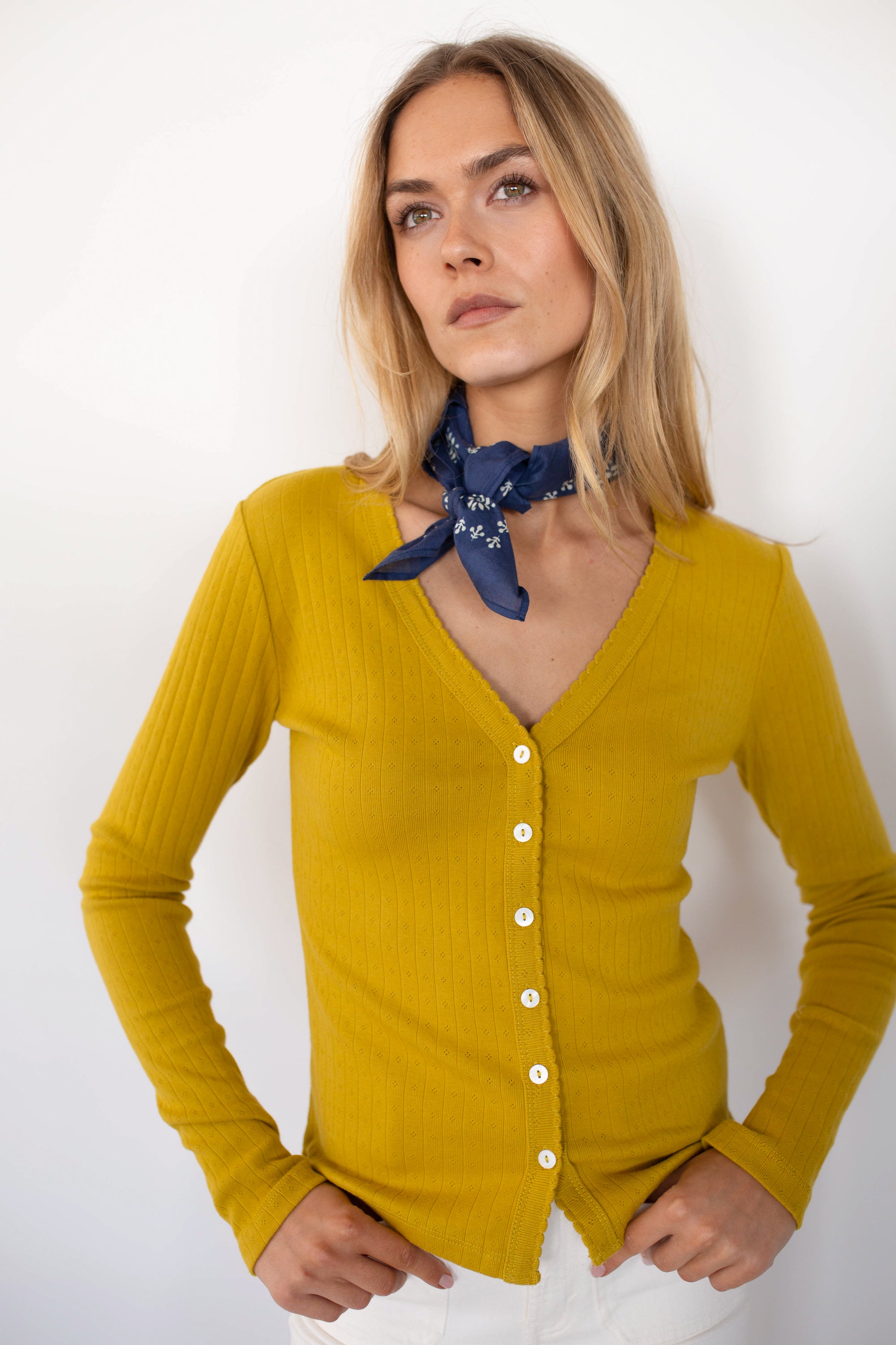 Pointelle Cardigan - Chartreuse
