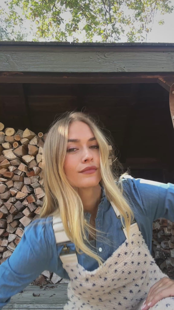 Our best-selling Scout Overalls return, updated in custom ivory and blue Birdseye sherpa for the ultimate cozy seasonal layer
