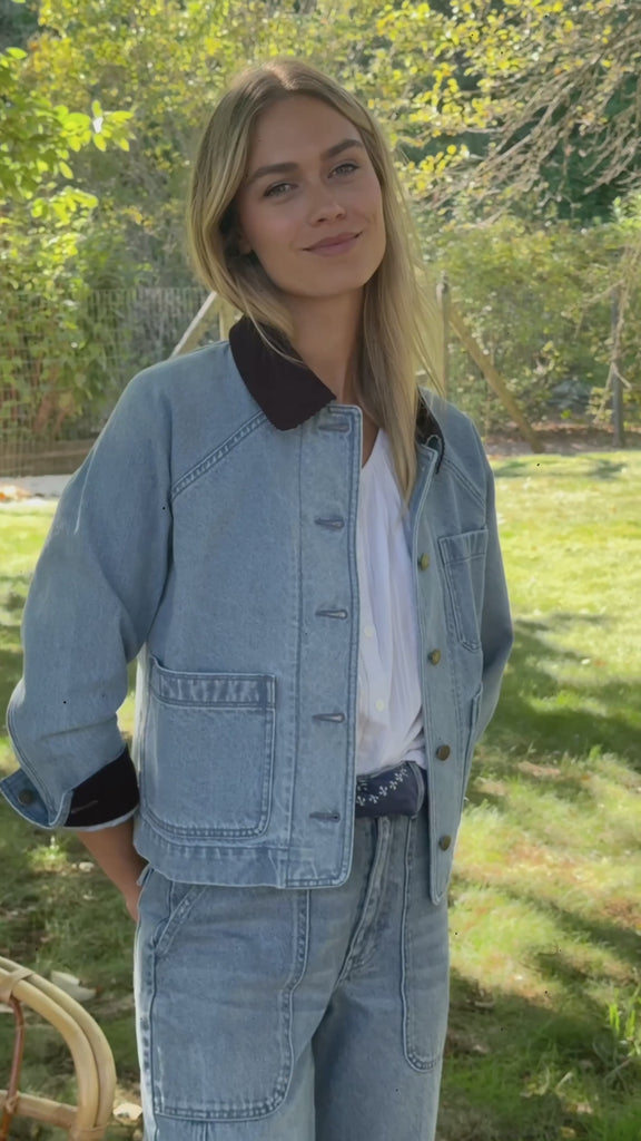 A modern take on classic workwear, the Denim Barn Jacket is designed with a cropped silhouette and heritage details for effortless, everyday layering.