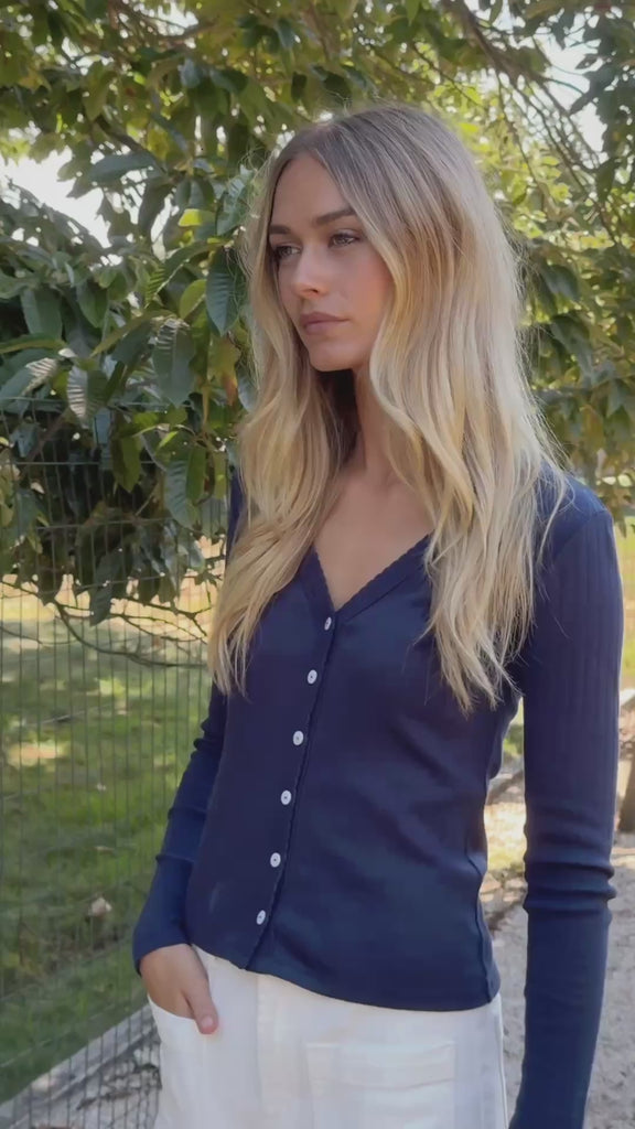 Pointelle Cardigan - Navy