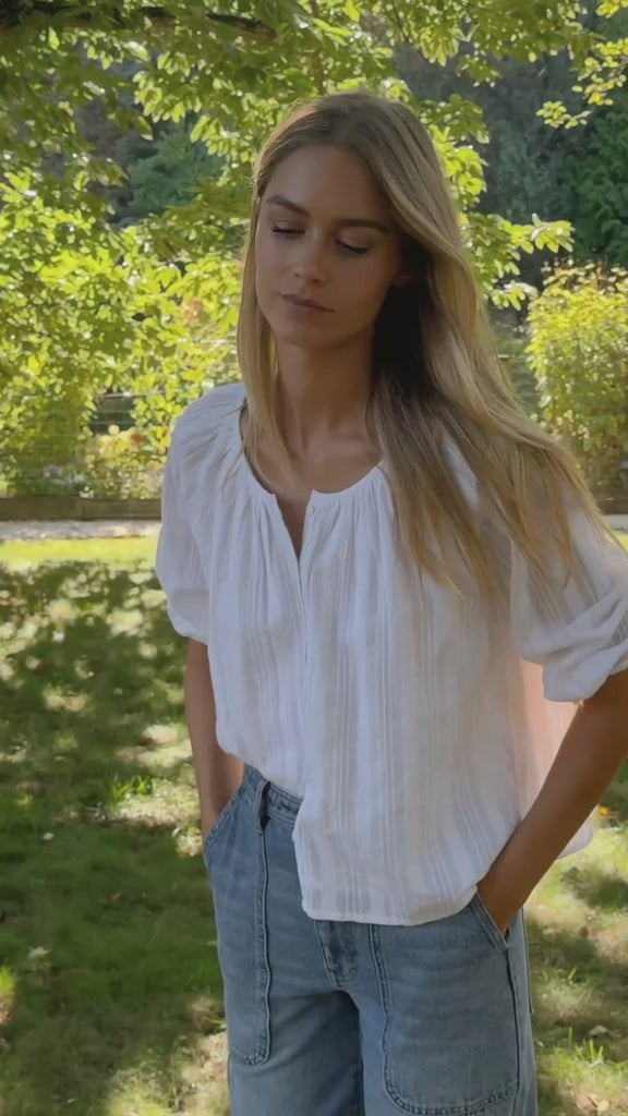 • A timeless white blouse that pairs effortlessly with skirts, shorts, or denim